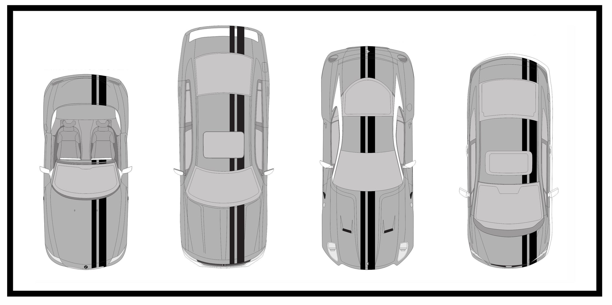 Dual Racing Stripes [3x] 4" , 2", 6" x 74" - Vinyl Decals - Fits All Vehicles