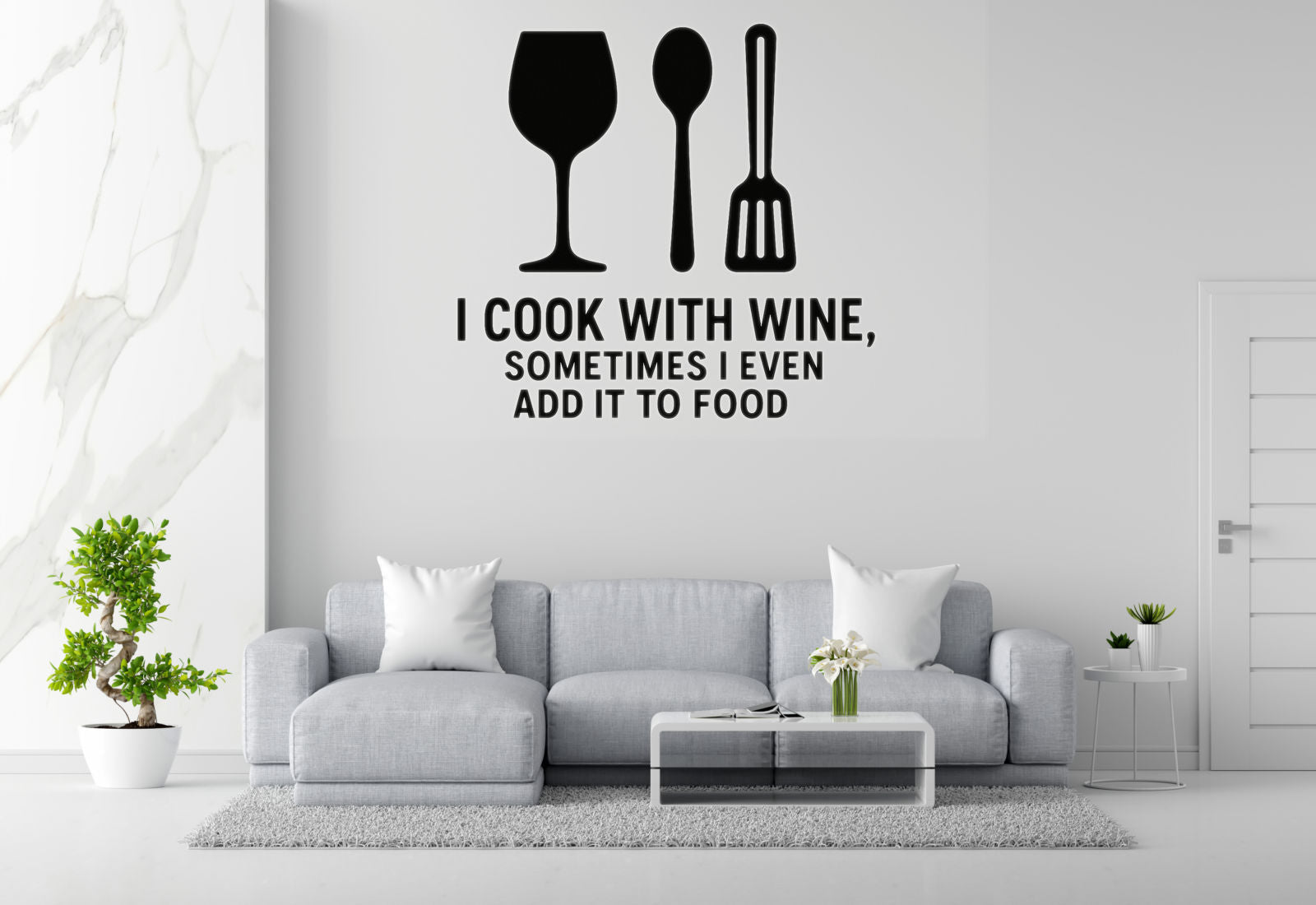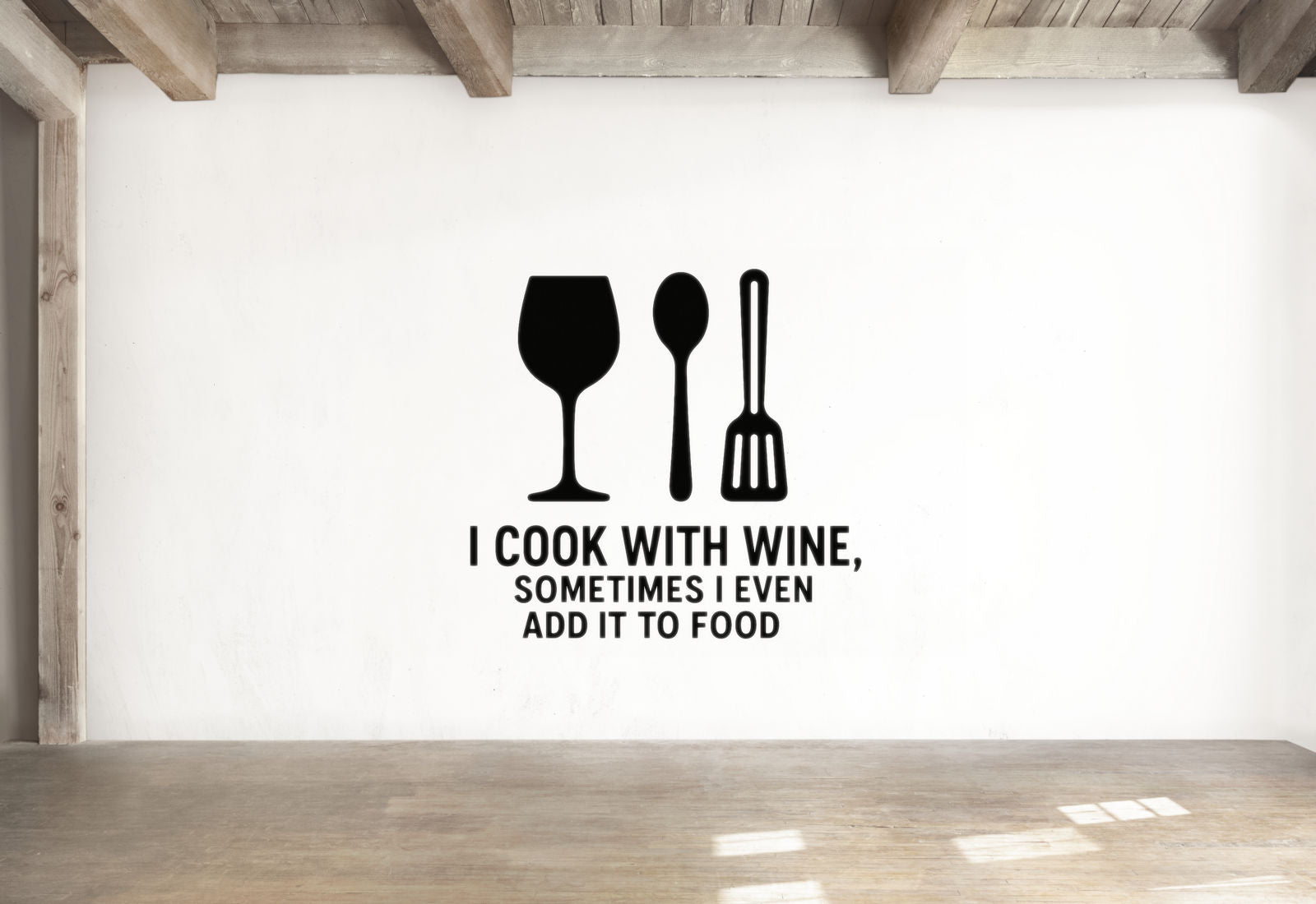 I Cook With Wine, Sometimes I Even Add It To Food - Funny Kitchen Wall Decal Vinyl Sticker Removable