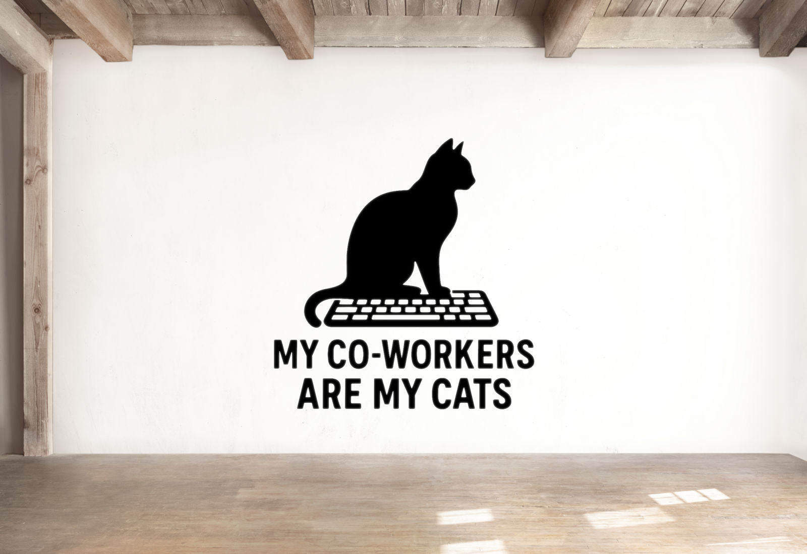Working from home means your feline friends become your office colleagues! This adorable home office wall decal features a cat sitting confidently on a keyboard with the proud declaration 'My Co-Workers Are My Cats' - celebrating the furry team members who supervise, distract, and provide emotional support during work hours.