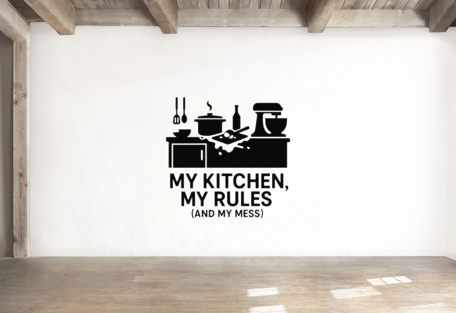 Whether you're decorating your kitchen, cooking area, or anywhere you rule the culinary domain, this decal brings that perfect combination of kitchen pride and honest mess acknowledgment. Your kitchen, your rules, your beautiful mess!