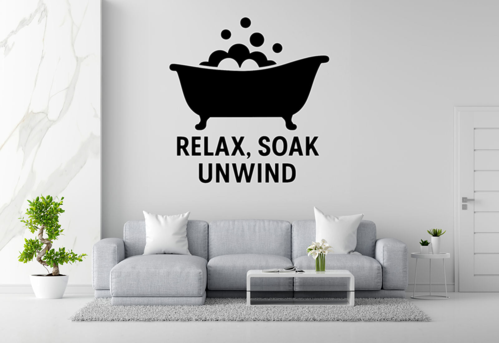 Sometimes the bathroom is the only place where you can truly escape and unwind. This serene wall decal features a luxurious bathtub with bubbles and the calming mantra 'Relax, Soak, Unwind' - perfect for creating that spa-like atmosphere in your own home.