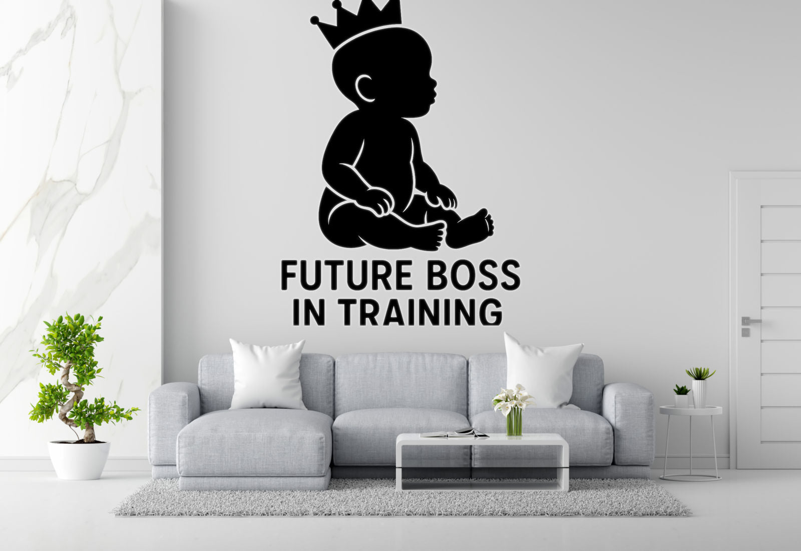 Don't let their size fool you - babies come with surprisingly strong opinions about everything! This hilariously accurate baby room wall decal features a mischievous baby with crossed arms and the fair warning 'Warning: Tiny Human, Big Opinions' - perfect for preparing visitors for what they're about to encounter.